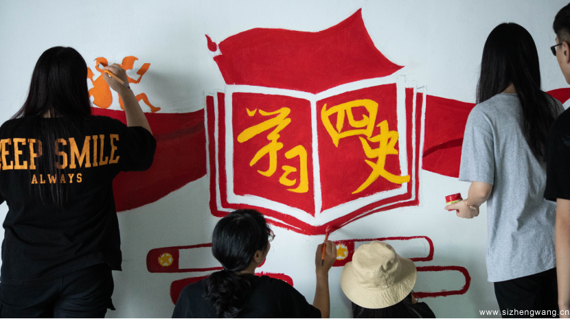 “党旗的颜色可以更红一点!”“这里写上‘四史’内容刚好合适!”艺术设计学院党总支的师生们在正心楼和菲华教学楼开展“绘四史红图,守爱国初心”主题教育墙绘活动,他们用尺子、画笔在墙壁上“各显神通”,以丰富多彩的绘画形式创作系列墙绘,把一面面白墙变成了师生学习“四史”的阵地墙。