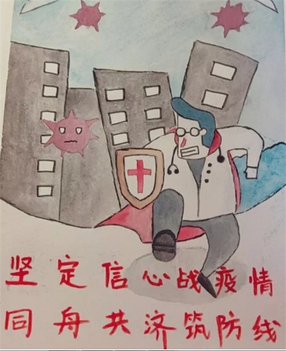 万搏在线登入:学生执笔作画擂响抗疫“战鼓”