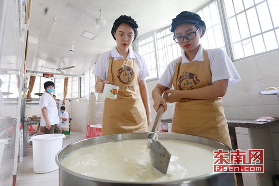 “淘小豆”小分队走进阿兵哥豆干坊体验制作豆干工艺 骆惠勇 摄