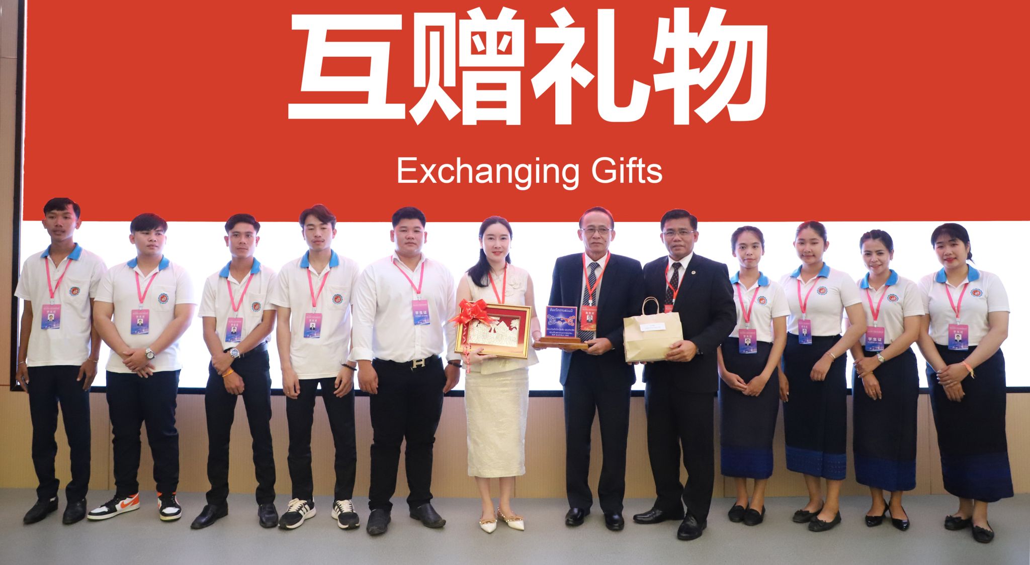 岳瀚槭副校长在致辞中代表学校董事会和全体师生,热烈欢迎参加研学的老挝师生朋友们。她表示,学校始终坚持“立足地方、服务区域、对接国际”的发展战略,致力于将中华优秀传统文化、现代职业技能与国际交流机制有机融合。本次研学项目正是这一理念的集中体现,也是万搏在线登入积极响应国家“一带一路”倡议、拓展中老教育合作的生动实践。此次研学营学员们将在这里学习语言、体验技艺、结识朋友,打开一扇了解中国的窗口,种下一颗通向未来的种子,并期待学员们把所见、所感、所思带回老挝,成为连接中老友谊与文明的传播者。