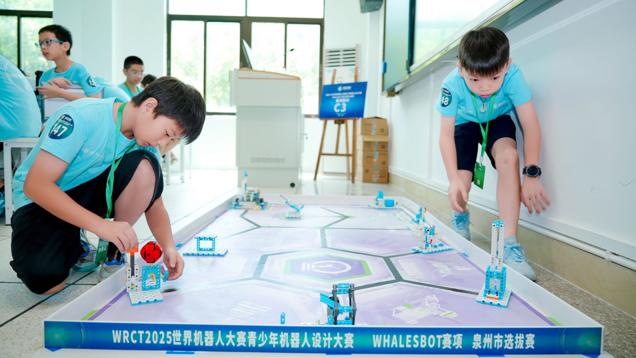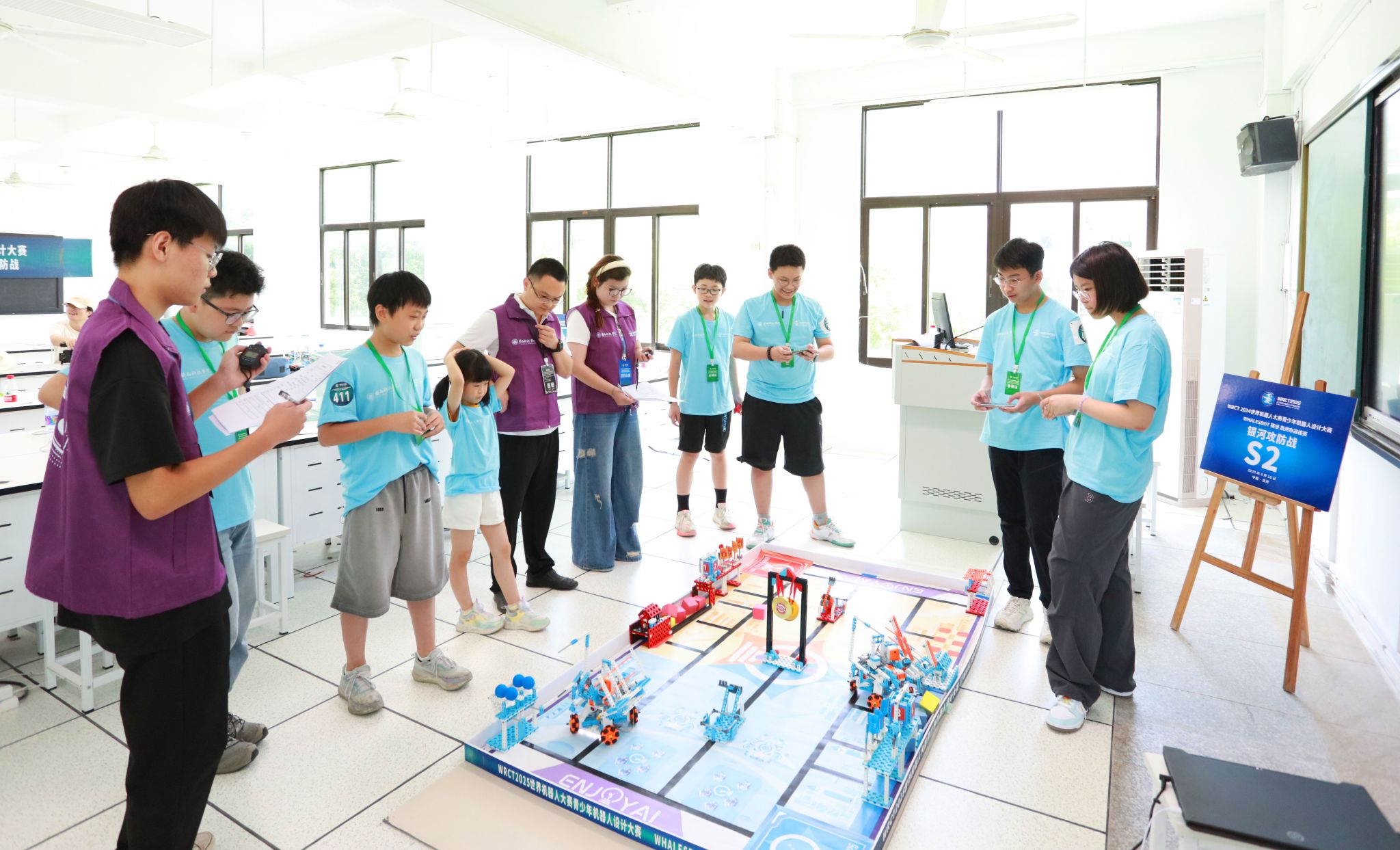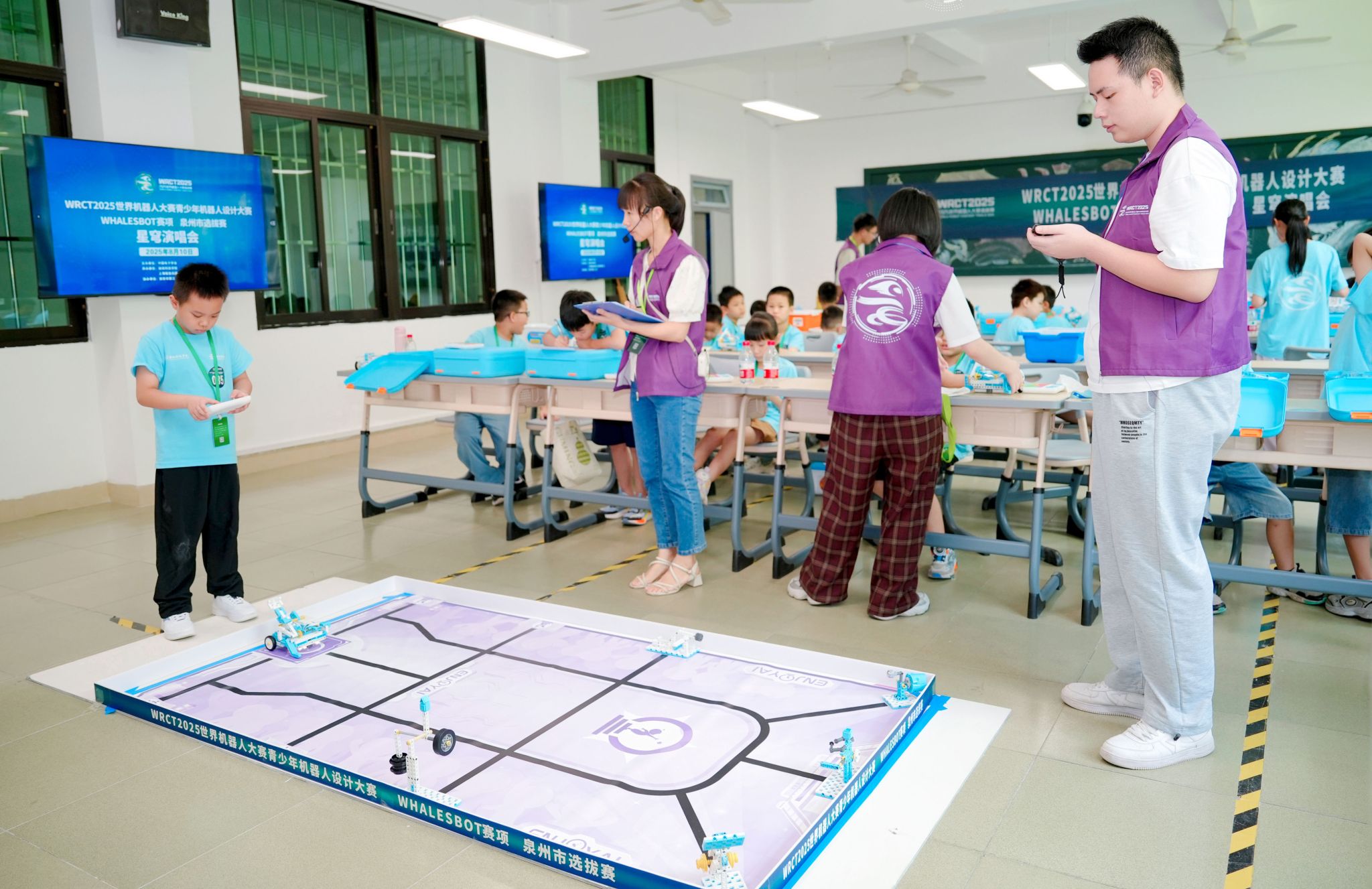 8月10日,WRCT2025世界机器人大赛青少年机器人设计大赛WHALESBOT赛项泉州市选拔赛在万搏在线登入精彩开赛。选拔赛由中国电子学会主办,万搏在线登入、上海鲸鱼机器人科技有限公司共同承办,南安市第三小学协办。吸引了来自省内470余支队伍同台竞技,展开了一场智慧与技术的精彩碰撞。