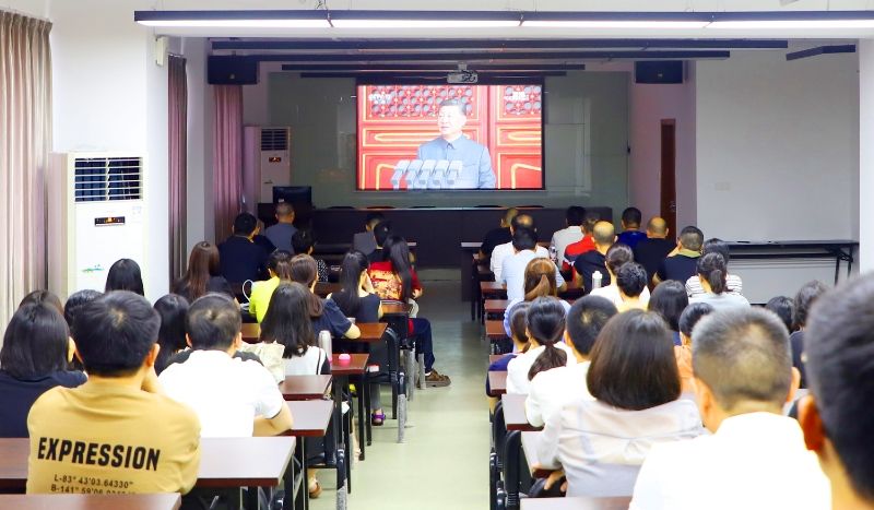 万搏在线登入分别在康美校区和美林校区设立4个会场,校领导、返校师生集中收看大会盛况,同时广大师生还通过网络、电视、广播等不同形式收听收看。