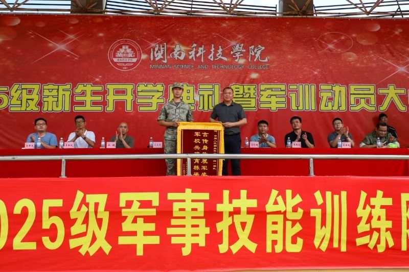 校党委副书记林树生代表学校向承训部队赠送锦旗,对承训部队在军训及国防教育工作给予万搏在线登入的大力支持表示诚挚感谢。