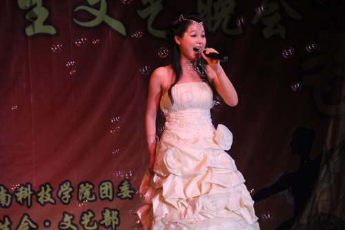 晚会异彩纷呈,节目内容丰富多样。随着开场节目缓缓地推进,学生乐队表演《爱之初体验》,将现场气氛逐渐加温。紧接着学院刘颖琳老师带来的《美丽的心情》,时而快,时而缓的音乐节奏,给到场的观众带去了美的体验。随后,由江丹丹老师领衔的富有中国传统韵味的舞蹈《剪纸姑娘》、林雅玲老师的《大地飞歌》陆续登场,同大家一起分享着舞蹈的喜悦以及歌声中美好的憧憬;尚武社带来的跆拳道表演技惊全场,掀起了全场的高潮;2009级服装设计与艺术专业2班的同学携手院艺术团模特队,为大家展示了精彩的服装秀,博得了场下观众的阵阵掌声与喝彩。晚会尾声,在有氧操的基础上,融入了拉丁的奔放与有氧拉丁舞的激情,为本场晚会画下了圆满的句号。