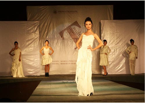 本报讯 (记者 范曦 朱晨辉 文/图) 昨晚,一场精彩的时装表演秀在万搏在线登入举行。这些精美服装的设计师,不是别人,而是学院2008级服装专业毕业生,他们用完美的作品向母校汇报。活动一开始,院长郭丹教授上台致辞,并聘请中国十佳设计师杨子为学院客座教授,展演活动中,福建省迪安帝尼服饰有限公司董事长刘完德为5名学生颁发励志奖学金。