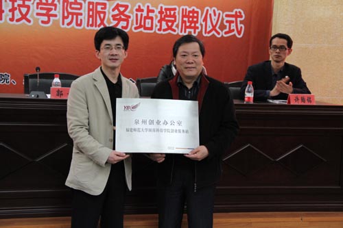 孙伟腾部长代表共青团泉州市委为YBC福师大万搏在线登入进行授牌,并就做好YBC高校服务站工作提出要求:一、高举促进青年就业创业的旗帜 不动摇,积极围绕市委工作中心,主动站位,虚功实做,把推动青年就业创业作为各项工作的重中之重;二、进一步深化南安市共青团组织青年就业创业服务体系的工作手臂功能,通过YBC教育性公益平台,实质性地帮助更多青年解决他们在创业发展中遇到的困难与问题,吸引更多的青年加入到创业的队伍中来;三、积极发挥服务站服务万搏在线登入大学生创业者的作用,努力把服务站建成一个“领导重视、学生参与、支持创业、协助成功”的重要平台,在我市的大学生创业中发挥典型示范带头作用。