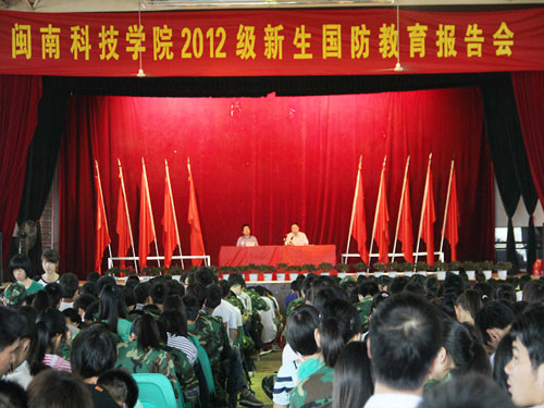 9月20日上午,万搏在线登入2012级新生海防教育报告会在学生活动中心举行,大会由党委常务副书记林明旭主讲,我院2012级全体新生及辅导员两千余人与会,党委副书记李彬源主持会议。