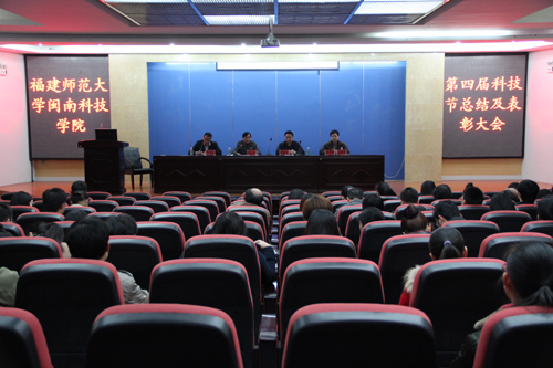 12月27日下午,学院第四届科技节总结暨表彰大会在图书馆学术报告厅召开。院长邱永渠、党委常务副书记林明旭、副院长周勇军、党委副书记李彬源出席大会。大会由李彬源主持。