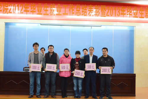 13日下午,我院在图书馆学术报告厅隆重举行2012年毕业生就业工作总结表彰暨2013年毕业生就业工作动员大会。院长邱永渠、党委常务副书记林明旭、副院长周勇军、党委副书记李彬源以及毕业生就业工作领导小组成员、各系部主任、辅导员、教师代表和学生代表等共200余人参加了此次大会。大会由周勇军主持。