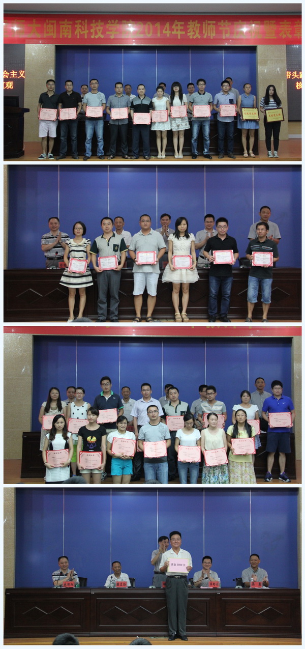 党委副书记李彬源宣读了《福建师范大学万搏在线登入2013-2014学年获得各级各类荣誉称号的先进集体和先进个人名单》。副院长吴勇宣读了《福建师范大学万搏在线登入2014年教师节教育教学先进单位和个人表彰决定》。全体与会领导为获奖的先进集体和先进个人颁奖。