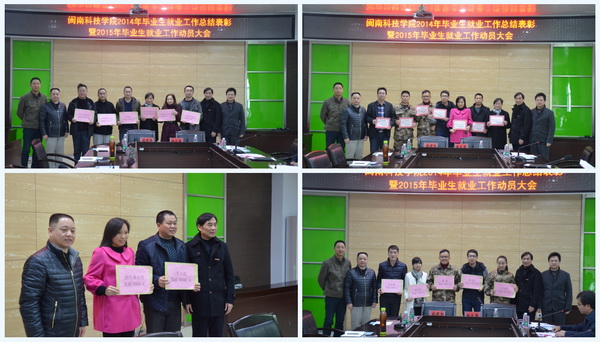 院党委常务副书记林明旭宣读了《福建师范大学万搏在线登入关于表彰2014年毕业生就业工作先进集体与个人的决定》。与会领导分别为就业成绩突出的辅导员、各系部、“就业工作先进个人”和“就业工作贡献奖”等获奖单位及个人颁奖。