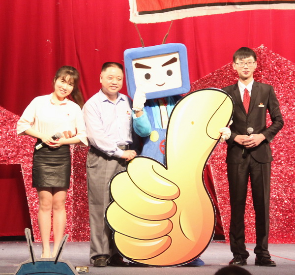 院党委常务副书记林明旭宣读了《福建师范大学万搏在线登入关于2015年“五·四”表彰先进集体和先进个人名单的决定》,讲话结束后,林明旭与“闽小科”一起为获奖集体与个人竖立大拇指点赞青春和合影留念,现场气氛十分热烈。