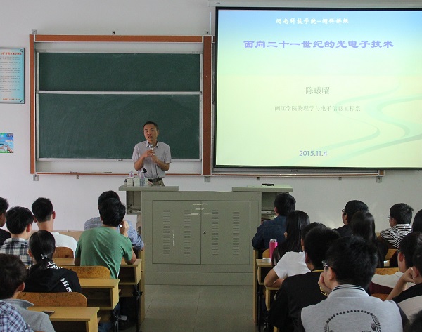 11月4日,光电信息科学系邀请闽江学院物理学与电子信息工程系陈曦曜博士教授,作题为“面向21世纪的光电子技术”的讲座。讲座由光电信息科学系主任杨文琴教授主持。