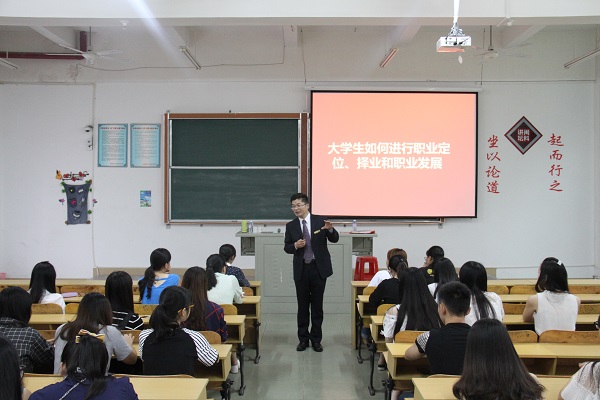 10月28日,“官网入口”邀请南安泛华大酒店人力资源总监、我院外聘专业顾问李志义,作题为“大学生如何进行职业定位、职业选择、职业发展”的讲座。