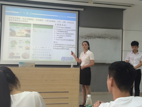8月11日,我院计算机科学系2012级首批“校企联合定制班”学员结业公开答辩会在苏州工业园区高博应诺教育集团实训基地召开。首批 “校企联合定制班” 15名学员顺利通过结业公开答辩。