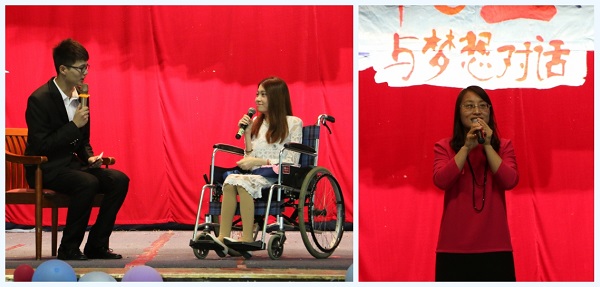 在“笃青春·对话梦想”篇章中,来自2014级数字媒体艺术专业的蔡雅娟“梦想宣讲人”讲述了自己虽然身患重病,双脚不能行走,但是仍然充满斗志的感人故事,她以“不忘初心,方得始终”的座右铭激励自己实现梦想。“梦想宣讲人”职业生涯规划师紫一老师结合自身创业经历给大家带来“如何绽放生命的五朵金花”的精彩宣讲,鼓励同学们朝着梦想出发,实现人生目标。