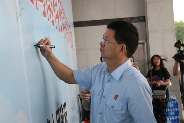 6月26日下午,由南安市禁毒委、康美镇人民政府主办的“6▪26国际禁毒日暨南安市禁毒宣传千里行——走进万搏在线登入”系列活动在我院举行。南安市副市长薛建明,泉州市公安局党委委员、南安市公安局局长庄文斌,泉州市公安局副调研员周和平,南安市公安局副局长黄东阳,学院副院长周勇军参加了启动仪式。
