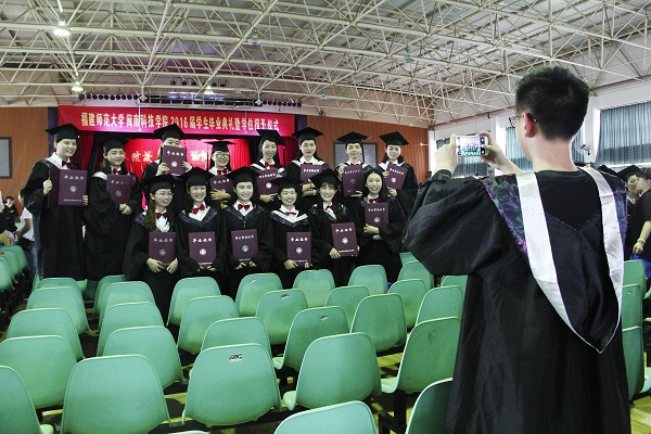院长邱永渠在典礼上作了热情洋溢的致辞。他与大家悉数四年来在闽科度过的难忘时光,并借用网络流行语“友谊的小船”寄语同学们面对风浪扬帆起航,一要为人诚心诚意,友谊的小船才能行稳致远;二要做事尽心尽意,事业的小船才能硕果累累;三要处世随心随意,生活的小船才能满载幸福。邱永渠院长作诗赠别2016届毕业生:“东溪河畔留踪影,求学修行度锦年,莫论前方多坎坷,阳光路上走明天”,深情的祝福和殷切希望引起现场师生的共鸣和掌声。