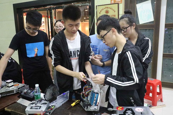 参赛选手现场调制机器