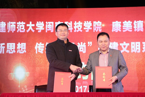 为认真贯彻落实十九大精神,深入实施文化惠民工程,丰富群众性文化生活,打造共建共治共享的社会治理格局,12月31日晚,学院与康美镇人民政府联合举办2018年元旦跨年晚会,并举行“践行新思想 传播新风尚”共建文明系列活动项目签约仪式。