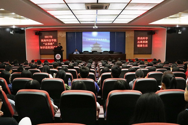 11月15日下午,学院保卫部、党工部、新闻宣传中心联合南安市公安局国保大队,开展“反邪教”知识进校园活动,院党委常务副书记林明旭到场指导。