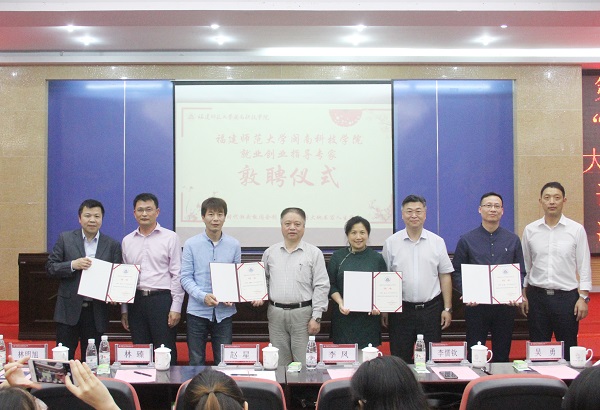 学院副院长(主持工作)张杰、党委常务副书记林明旭、副院长吴勇、党委副书记俞建群为李凤、赵星、李儒钦、林臻颁发就业创业指导专家聘书。