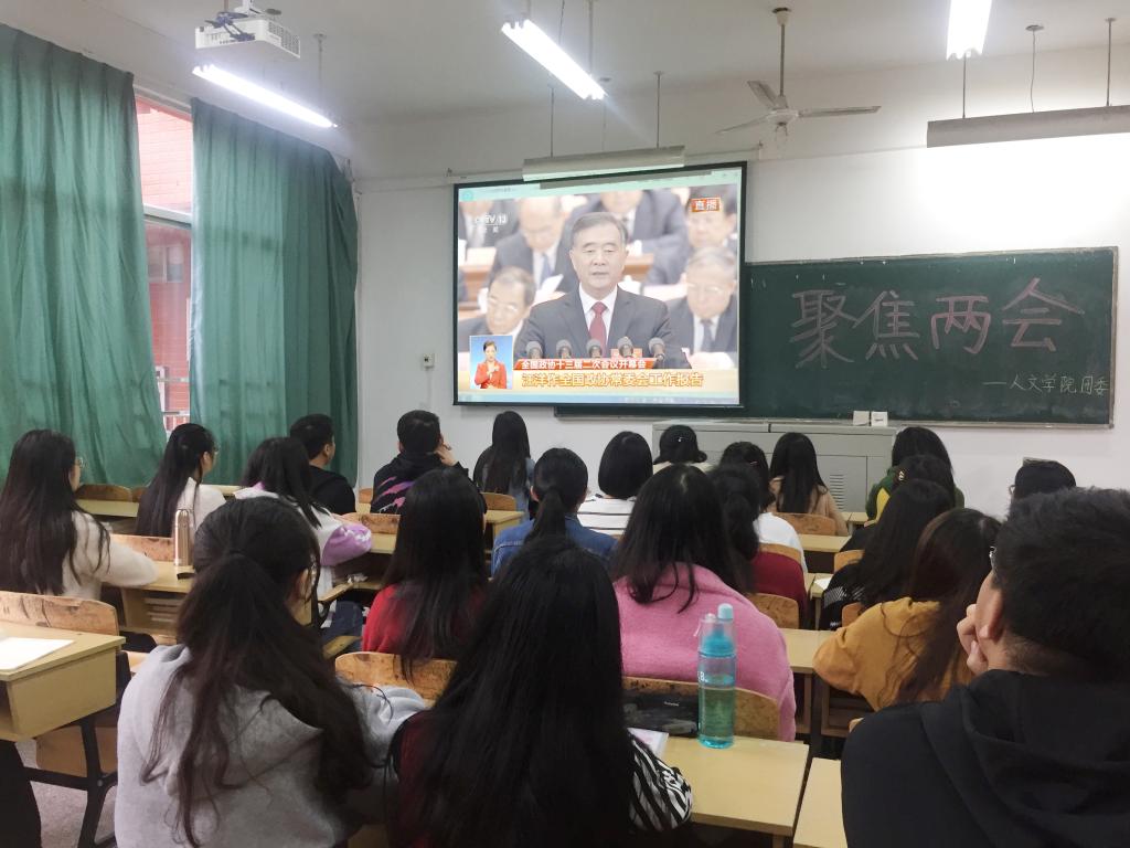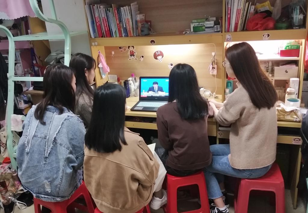师生通过多渠道在教室、宿舍、自习室看两会开幕式