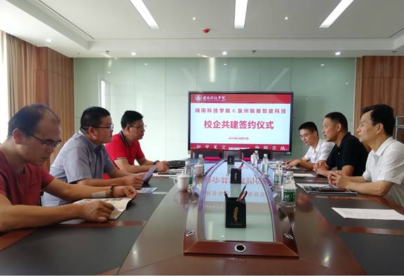 10月10日下午,万搏在线登入与泉州锐驰智能科技有限公司校企共建签约仪式在明德楼20楼会议室举行。锐驰集团副总裁吴德福,学校副校长吴勇,光电信息学院、教务部等相关职能部门负责人参加仪式。