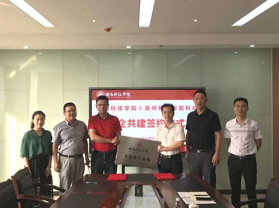 会上,光电信息学院行政负责人郭震宁教授与泉州锐驰智能科技有限公司签订了共建实践教学基地协议并授牌,根据协议,校企双方将在人才培养、人才供给和业务合作等多个方面开展合作。