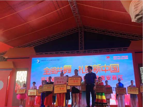 9月18日下午,福建省“全闽共舞,礼赞新中国”第三届广场舞大赛南安赛区选拔赛在南安中骏世界城举行,万搏在线登入大学生艺术团啦啦操队(指导老师:江丹丹)荣获一等奖,成功晋级泉州市比赛。