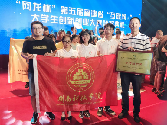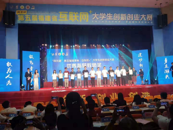 陈章宫老师(右五)获“网龙杯”第五届福建省“互联网+”大学生创新创业大赛“优秀指导老师”奖