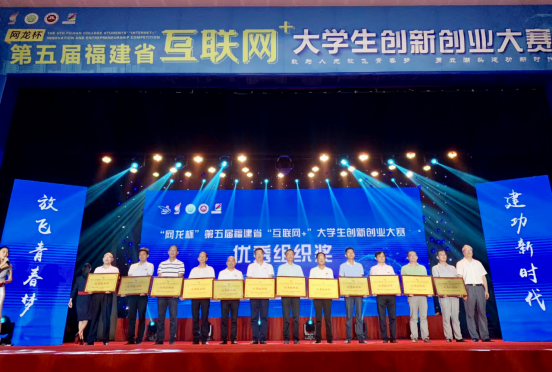 学校副校长吴勇(左三)代表学校接受“网龙杯”第五届福建省“互联网+”大学生创新创业大赛优秀组织奖