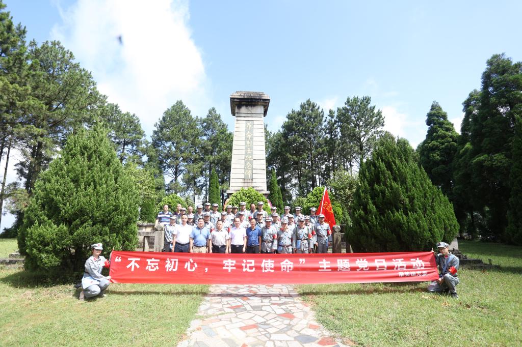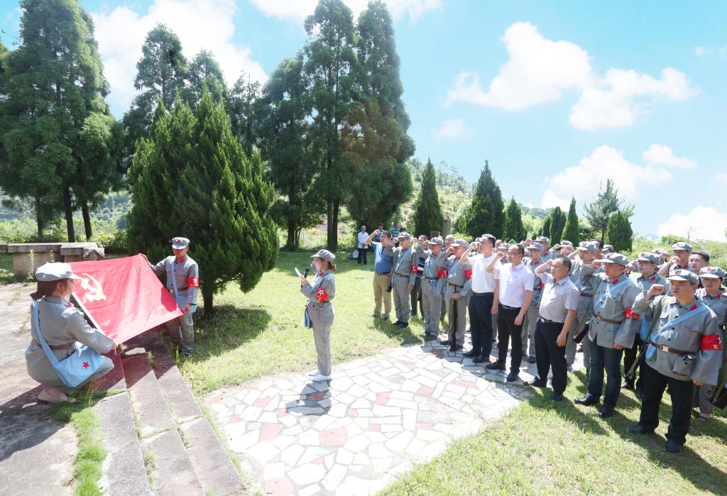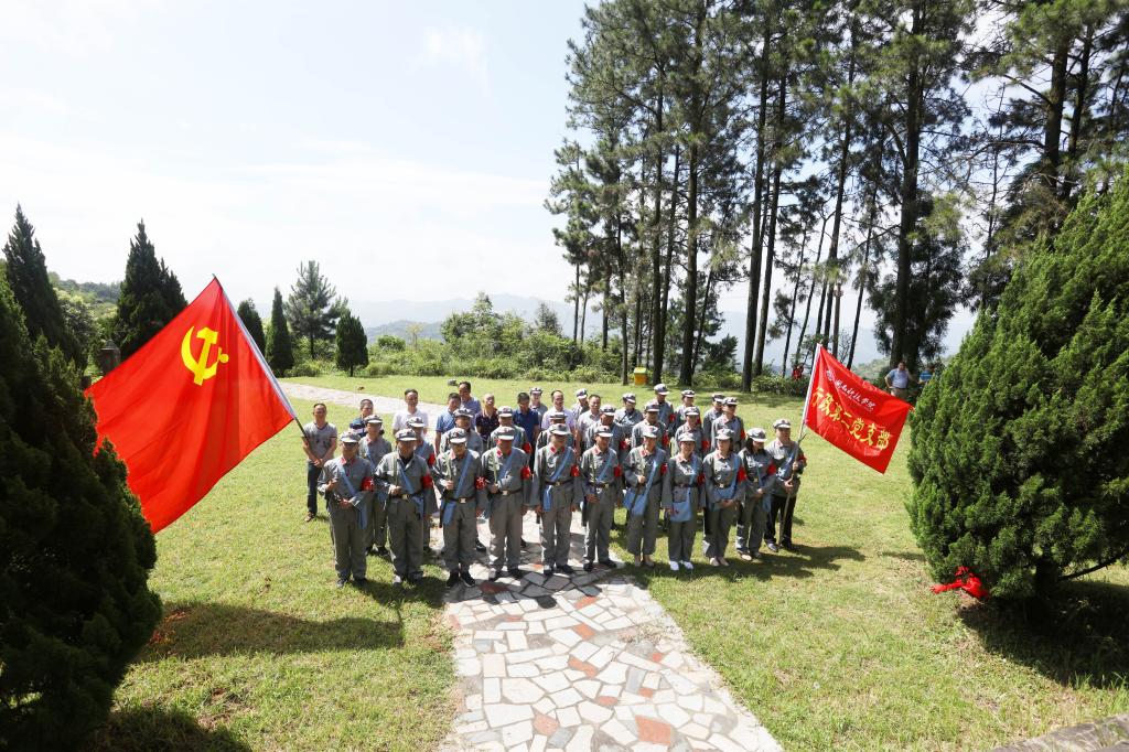 烈士墓碑、地下印刷厂、子弹壳、红军洞……第二次国内战争时期留下的红色印记遍布山城。全体党员穿上红军装,来到革命烈士纪念碑前,在庄严的国际歌声中鞠躬默哀,并向革命先烈们敬献花圈,表达缅怀之情。