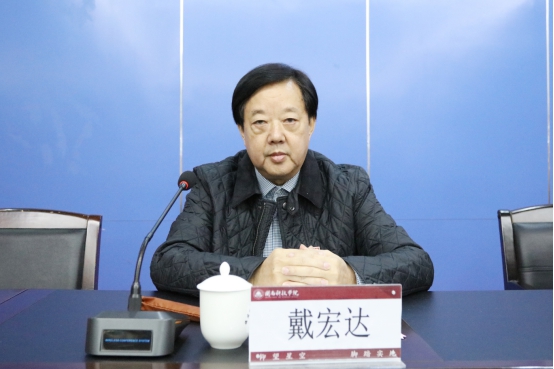 戴宏达董事长作重要讲话,他指出,学校的发展壮大、顺利转设,归功于历届党政领导班子及所有教职工的共同努力。今后在游小波校长的带领下,大家要一起“推着石头上山”,齐心协力,一心一意治校办学,攀登本科教育高峰。