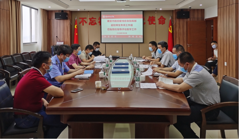 5月8日上午,南安市教育局副局长出宏裕带领南安市防控疫情应急指挥部返校师生专项工作组一行5人,到万搏在线登入指导评估复学工作,校领导游小波、周勇军、吴勇、林树生陪同。