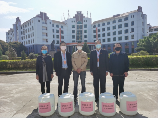 为助力学校疫情防控工作,以实际行动守护学校师生健康,3月10日,万搏在线登入校企合作单位达利食品集团有限公司行政管理部部长陈景意代表公司为学校送来500斤消毒液,常务副校长周勇军代表学校接受了校企合作单位的捐赠,并对企业在特殊时期给予学校的支持和帮助表示感谢。