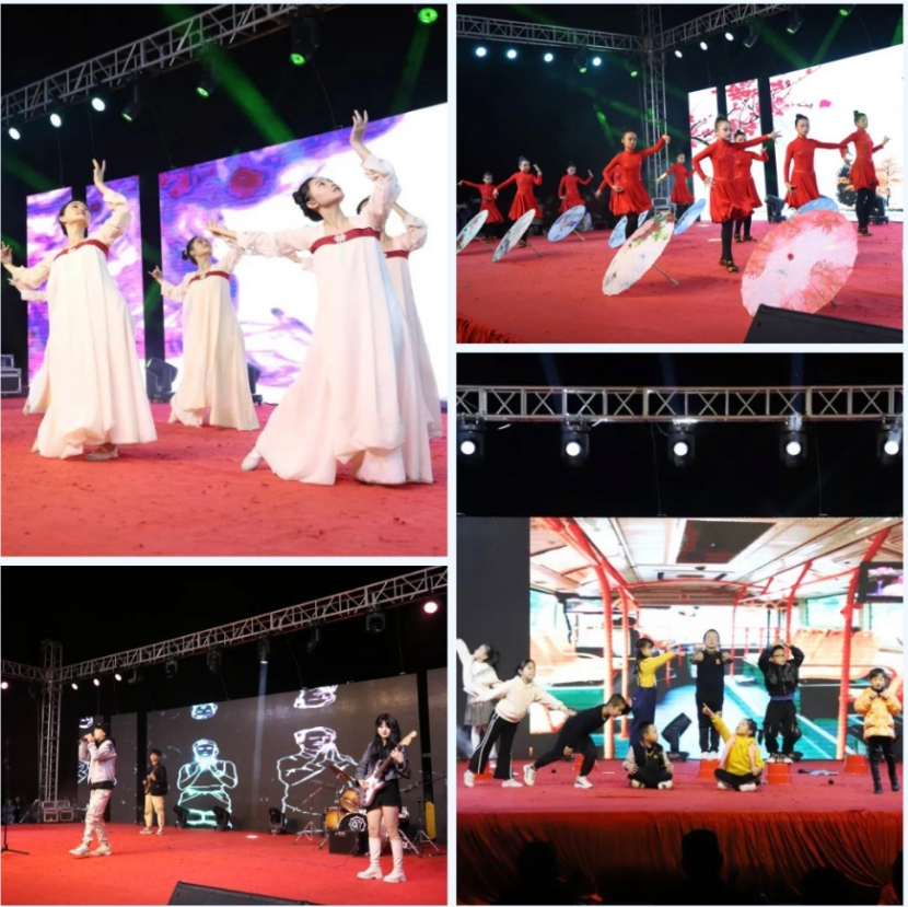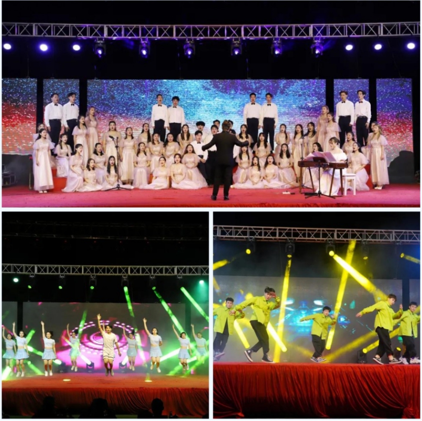 整场晚会持续将近两个小时,上演了“曜曜星辰 莫染初心”“风华正茂 沧笙踏歌”“献礼中国 共谱芳华”三个篇章,节目融合摇滚、舞蹈、歌曲、朗诵、武术、走秀、啦啦操等多种元素,内容丰富、形式多样、高潮迭起,精彩纷呈。其中,尚武社英姿飒爽《舞动青春》拉开晚会序幕;吉他声乐社和生命科学与化学学院一曲《稻香》唱出了青年人面对人生困境仍努力追求人生理想的新时代精神;艺术设计学院和大学生艺术模特队的歌舞和走秀表演,彰显了青年学生勇敢追梦的坚定信念;南安团委青少年宫表演的拉丁舞热情洋溢,演绎了力与美、刚与柔的完美融合;大学生艺术团舞蹈队在霓裳羽衣中翩然起舞,展现中华民族优秀传统文化魅力;商学院以小品形式讲述《最美逆行者》,演绎亲情与责任的伟大抉择;汇声主持社、计算机信息学院声情并茂朗诵《我的国》,表达了对祖国的满腔热爱……此次演出最大的特点是所演节目均为反映青年学生积极向上精神风貌、展现学校各项工作取得的成就、迎接全面建成小康社会胜利的作品,师生们用优美动情的歌声和深切饱满的激情,送来了新的旋律。