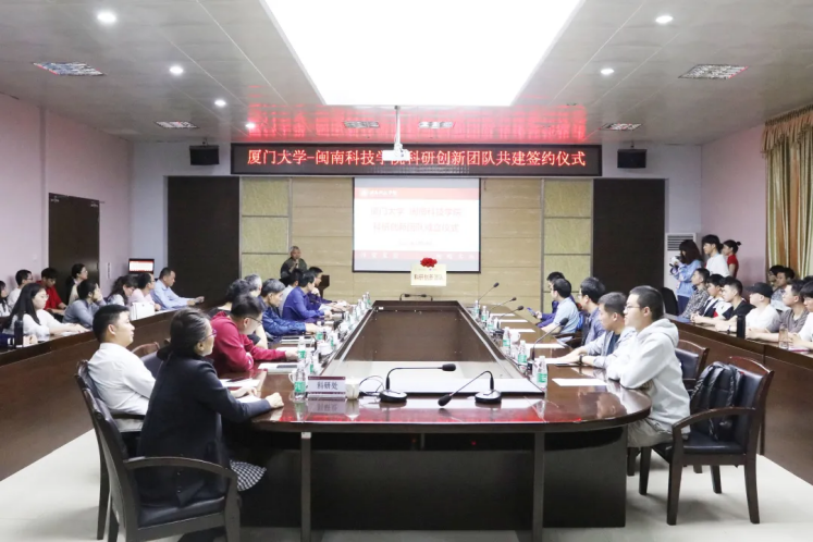4月28日上午,万搏在线登入与厦门大学智能多媒体技术实验室举行科研创新团队共建签约仪式,校领导游小波、李旭、周勇军,厦门大学博士生导师、万搏在线登入客座教授、泉州市“桐江学者”李绍滋教授,厦门大学博士(后)团队等参加活动。签约仪式由常务副校长周勇军主持。