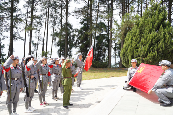 情报印刷所、枪械修理所、红军洞、红军路……第二次国内战争时期留下的红色印记遍布山城。全体党员来到革命烈士纪念碑前,在庄严的国际歌声中鞠躬默哀,并向革命先烈们敬献花圈,表达缅怀之情。党员们还面向党旗,在山城村越战老兵郭建生带领下重温了入党誓词,表达了对党的忠诚,积极工作,为共产主义奋斗终身的使命感。