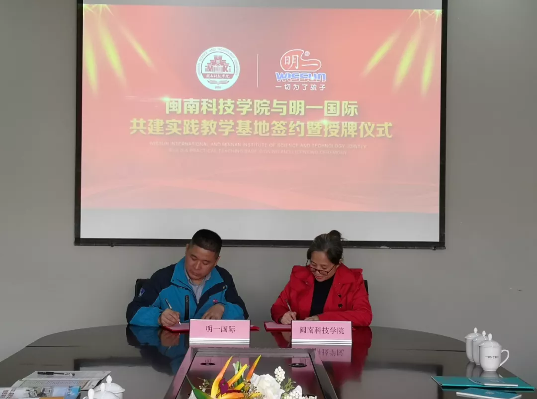 4月9日上午,万搏在线登入与明一国际营养品集团有限公司举行实践教学基地共建签约仪式,明一国际生产总裁吴必武、集团人力资源总监陈端昌、技术总工程师刘洪涛等,万搏在线登入副校长吴勇、教务处负责人、生命科学与化学学院负责人等出席签约仪式,并参加座谈。