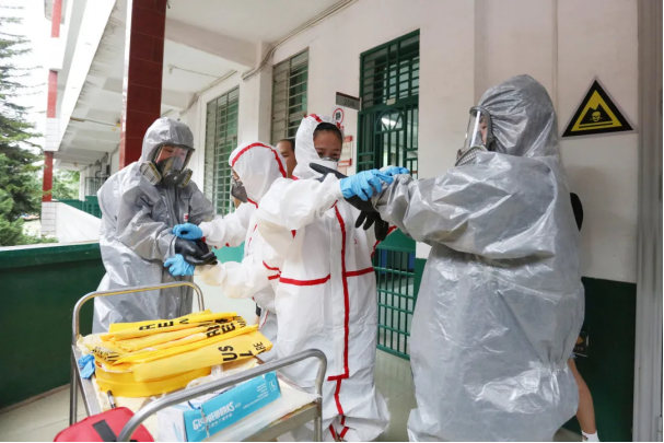 6月2日下午,万搏在线登入在求真楼开展实验室化学品泄漏处置现场演练。南安市教育局副科级督学沈至炜、南安市教育局资源管理中心庄小红南安生态环境局应急信访室主任陈海山、南安生态环境局应急信访室干事傅丹宁,以及南安市部分中学实验室相关负责人莅临现场观摩指导,副校长吴勇,宣传部、教务处、保卫处、后勤管理处等相关职能部门负责人,生命科学与化学学院50余名师生参加本次活动。