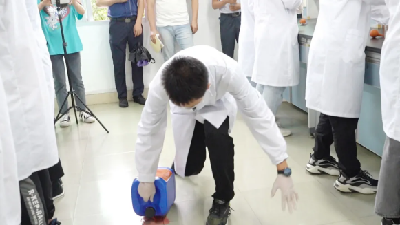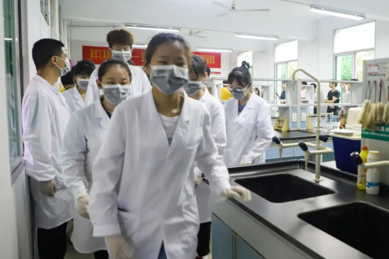 “老师,有同学不小心打翻了有机废液喷到眼睛了!”“立即带该同学去洗眼器处对眼部进行冲淋处理。”“全体同学立即停止实验,靠窗的同学将窗户全部打开,其他同学从前后门有序撤出实验室。”随着一声“命令”,实验室内全体同学迅速有序离开实验室,现场立即关闭前后门并拉起警戒线。