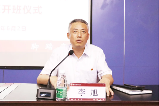 校党委书记、党史学习教育领导小组组长李旭主持开班式并作讲话。他强调,要强化思想自觉,推动党史学习教育往深里走。要切实提高思想认识,把参加读书班学习当作一次学习再深化、理论再提高、思想再提升、能力再增强、党性受教育的机会,加强学习自觉,抓住学习重点,以学史明理为前提,一体推进学史增信、学史崇德、学史力行。通过学习,增进对马克思主义、中国共产党、中国特色社会主义的政治认同、思想认同、情感认同,增强“四个意识”、坚定“四个意识”,做到“两个维护”。要培树优良学风,推动党史学习教育往心里走。要端正态度、高标要求、端正学风、力求实效,以高度的思想自觉,强化统筹兼顾,正确处理好学习和工作时间安排,确保集中精力、精神饱满。深化学习思考,紧密联系实际,踊跃交流发言,积极撰写心得,确保学有所思、学有所得。要紧密联系实际,推动党史学习教育往实里走。要将学习的成果转化为推动学校事业发展的强大动力,转化为“我为师生办实事”的具体行动,坚持学用结合,善于总结经验、观照现实、推动工作,以扎实且富有成效的学习成果推动各项工作开创新局面,以优异成绩庆祝中国共产党成立100周年。