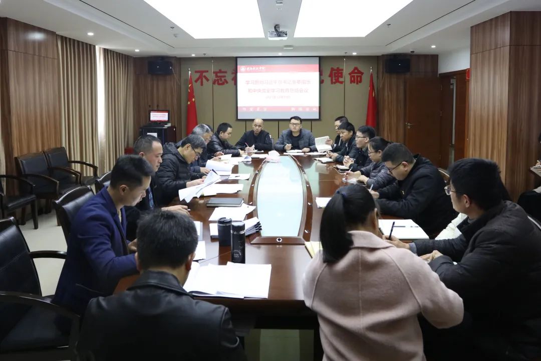 会议强调,要贯彻习近平总书记的重要指示精神,落实中央、省委和省委教育工委工作部署,全面总结好党史学习教育,要不断巩固拓展党史学习教育成果,以强烈的历史主动精神奋进新征程、建功新时代。一要在理论宣讲上再发力,深化理论宣讲,在重大理论问题上讲深讲透,推进理论宣讲,把学习贯彻六中全会精神作为深化党史学习教育的重大任务,把深入理解全会精神的丰富内涵作为深化党史学习教育的主要内容,推动六中全会精神贯穿到学校各个方面,推进党史学习教育工作落地生根。二要在学习转化上再部署,深化拓展“再学习、再调研、再落实”活动,深入开展“我为师生办实事”实践活动,不断推动师生员工民生实事项目、教学改革难点项目、党建品牌创建项目取得新突破、新进展、新业绩,始终以高度的政治责任感持续用力、狠抓落实,引导广大师生员工进一步坚定信心,聚焦学校本科教学工作合格评估和高质量发展,以更加昂扬的姿态迈进新征程、建功新时代,扎实有序推进党史学习教育走深走实。三要在高质量发展上再部署,面向第二个百年奋斗目标新征程,进一步把思想统一到六中全会精神上来、统一到习近平总书记对党史学习教育重要指示要求上来,把深刻领会“两个确立”的决定性意义作为深化党史学习教育的根本要求,高起点谋划、高站位推进明年工作,以优异成绩迎接党的二十大胜利召开。