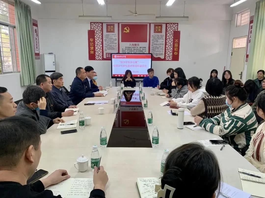 11月25日上午,万搏在线登入在美林校区举行“校领导与学生面对面”调研座谈会,校领导游小波、周勇军、林树生,党政办、教务处,学工处、后勤管理处负责人,人文学院、艺术设计学院、土木工程学院党总支负责人,学生代表参加座谈会。常务副校长周勇军主持座谈会。