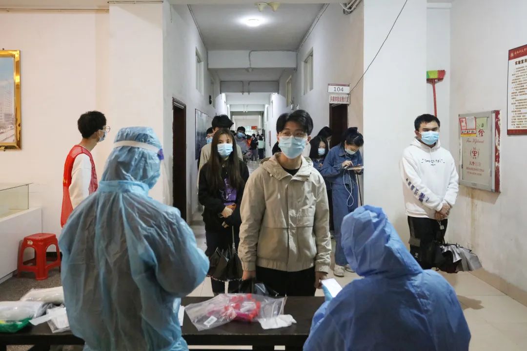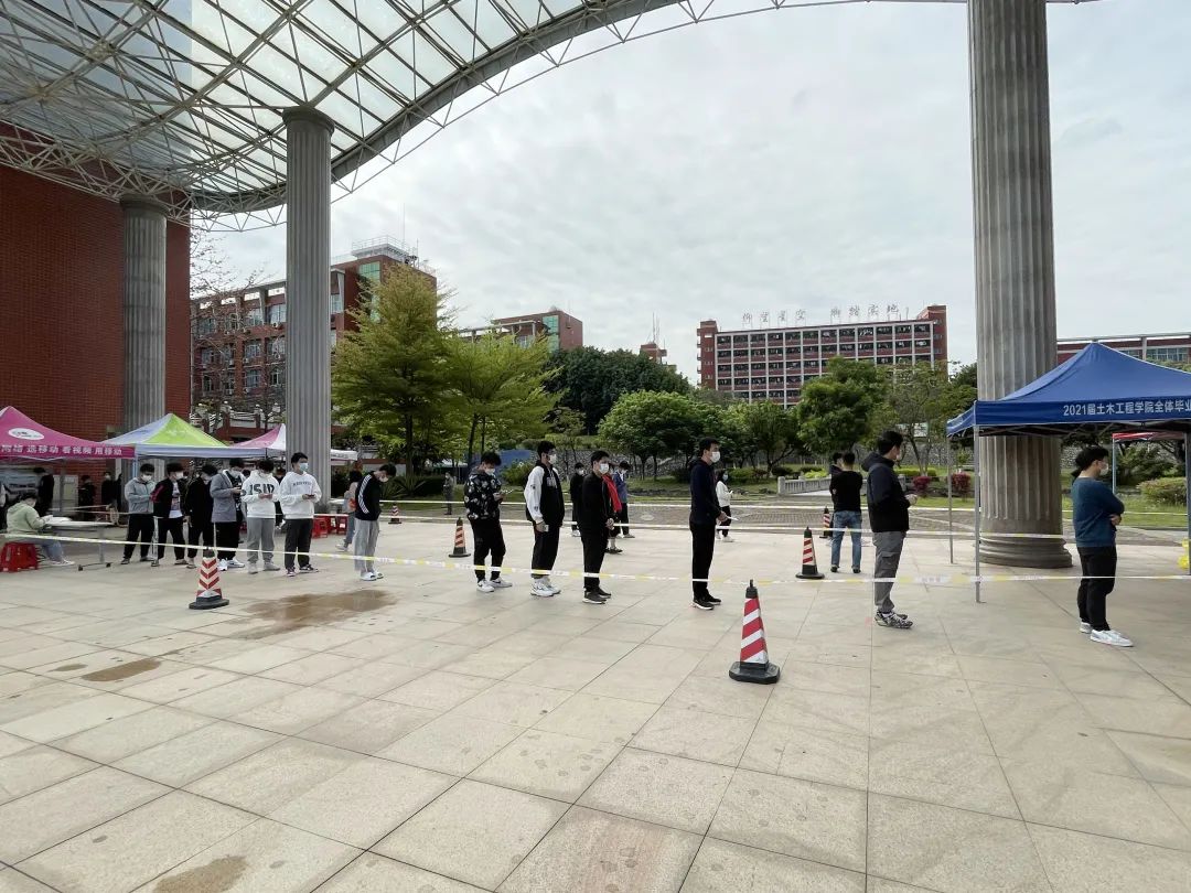面对时间紧、任务重的情况,当天凌晨4:10,广大医护工作者和师生员工志愿者迅速集结完毕,有序开展核酸检测工作。在南安市委市政府的关心指导和大力支持下,截止上午9:00,圆满完成了住校7200余名师生员工及家属的核酸检测工作。