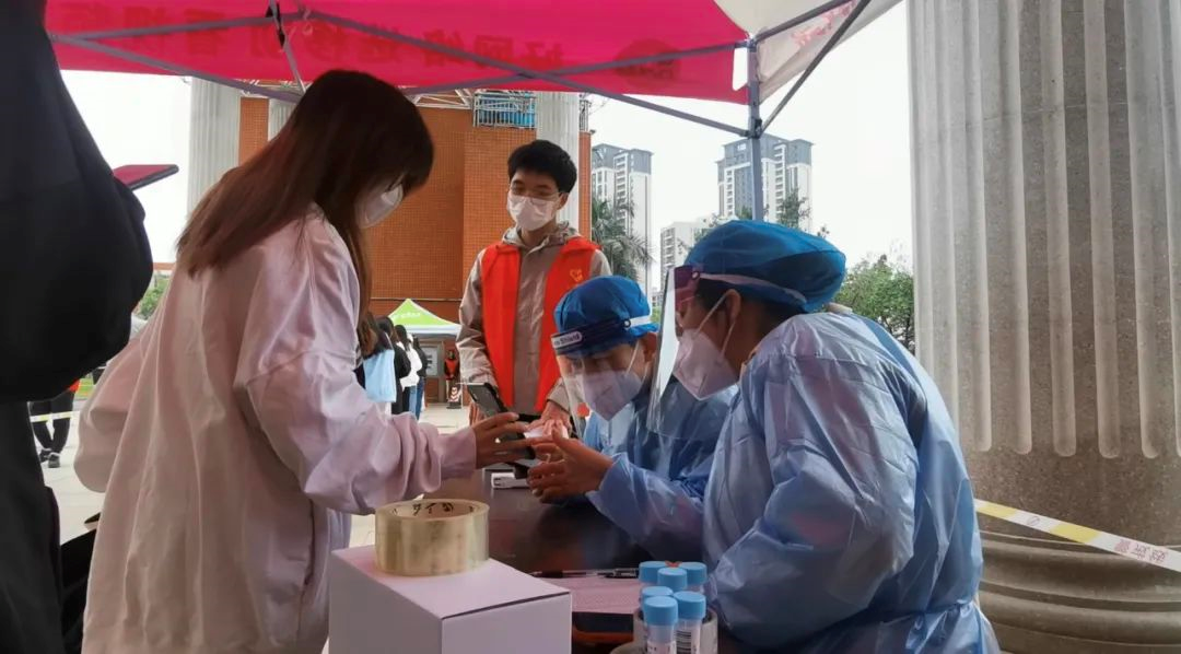 面对时间紧、任务重的情况,当天凌晨5:00,广大医护工作者和师生员工志愿者迅速集结完毕,有序开展核酸检测工作。在南安市委市政府的关心指导和大力支持下,截止上午10点20分,圆满完成了住校7200余名师生员工及家属的核酸检测工作。