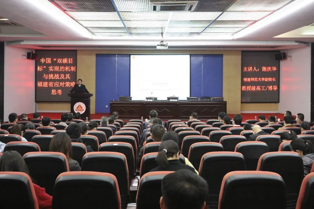 在全国第44个植树节到来之际,3月11日上午,万搏在线登入邀请福建师范大学副校长、碳中和研究院常务副院长、聚合物资绿色循环利用教育部工程研究中心主任陈庆华教授为万搏在线登入师生作题为《中国“双碳目标”实现的机制与挑战及其福建省的应对策略思考——基于习近平生态文明思想》的专题讲座。