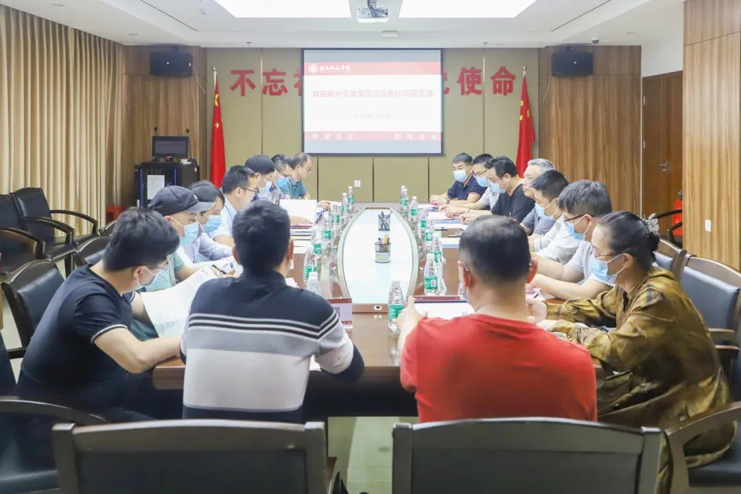 5月10日下午,泉州交通发展集团有限责任公司投资运营部经理康全国,泉州大数据运营服务有限公司副总经理柯俊勇,泉州市搏浪科技集团有限公司副总经理曾金鑫、魏巍,泉州交发信息技术服务有限公司执行董事何桂明,福建省华大数码科技有限公司副董事长苏文彬等带队莅校洽谈校企合作。