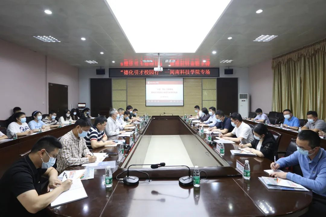 5月19日上午,德化引才校园行•万搏在线登入专场活动在万搏在线登入图书馆二楼会议室举行。德化县委常委董俊凯携相关部门负责人就高校毕业生在德化就业创业优惠政策等进行宣介。校领导李旭、周勇军以及相关职能部门负责人出席活动。